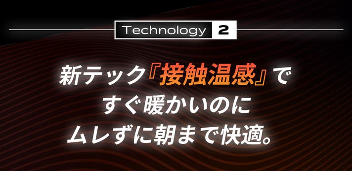 - 新テクノロジー「接触温感」搭載。入った瞬間から驚きの暖かさ。もう暖房も、布団乾燥機も不要!