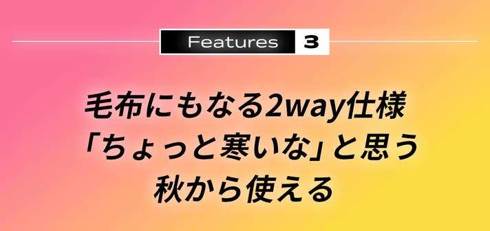 カバーそのままでも、毛布としても使える2way仕様。秋から冬、肌寒い春まで活躍します。