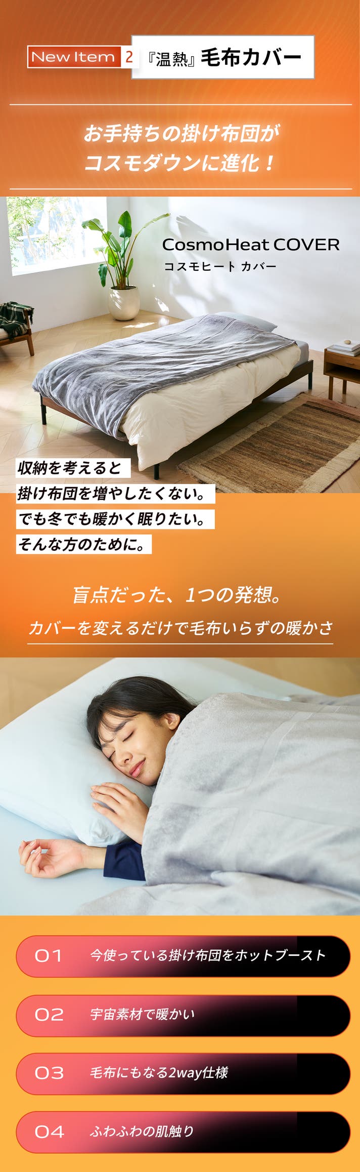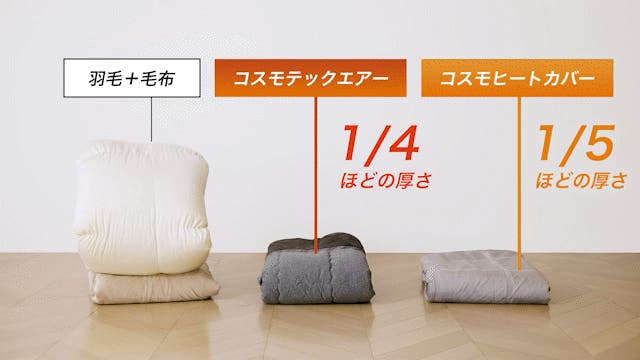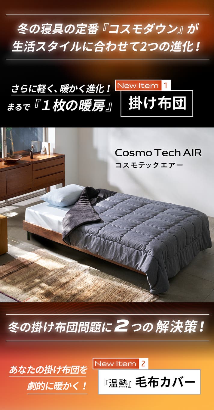 - 2025年はNEWアイテム「コスモヒートカバー」も登場。お手持ちの布団が、温熱布団に劇的進化!