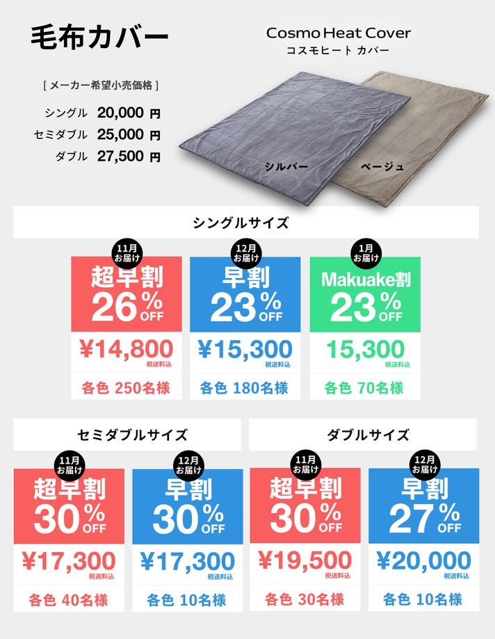 12月発送【早割27%OFF】温熱毛布カバー×1(ダブル:シルバー)