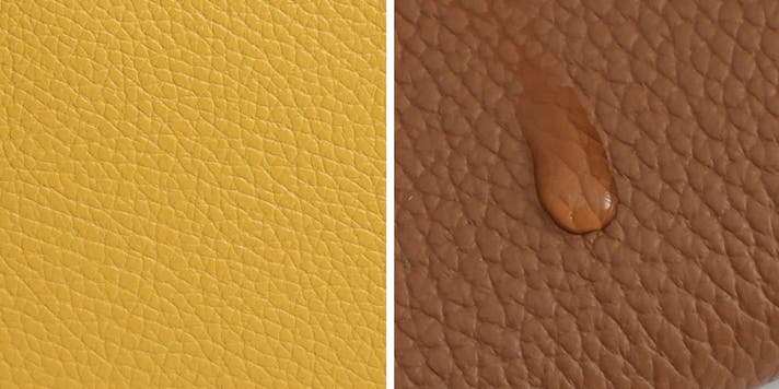 革表面のシボで傷が目立ち難く、水分に強いのが特徴です※多少は水を弾きますが、水がかかった際は早めにふき取ってください