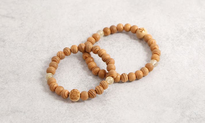 京念珠メーカーに在籍し【未来の名匠】に認定された京職人に依頼、貴重な木材である「屋久杉」で数珠ブレスを数量限定でつくって頂きました