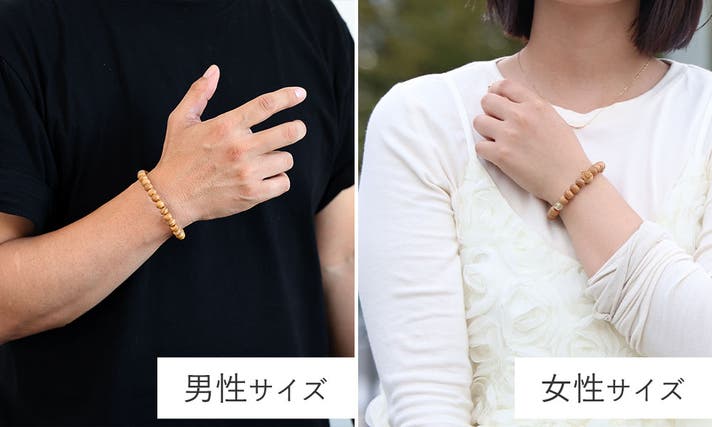 サイズは2種類(男性サイズ約8㎜玉/内周約17㎝・女性サイズ約8㎜玉/内周約15.5㎝)
