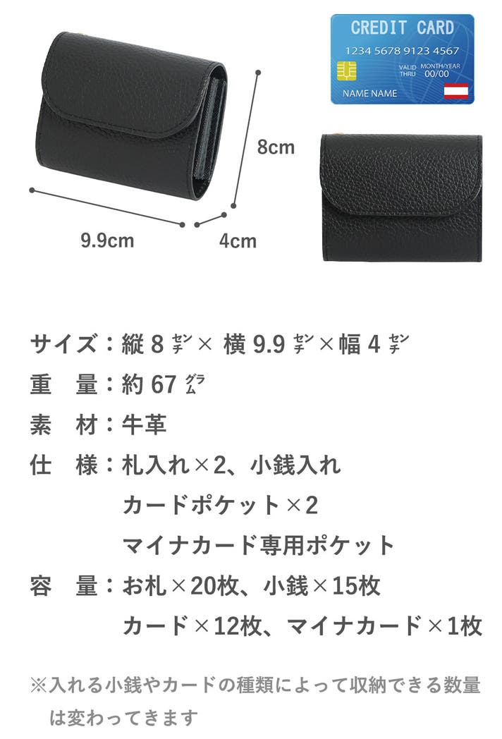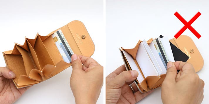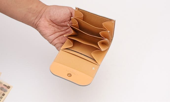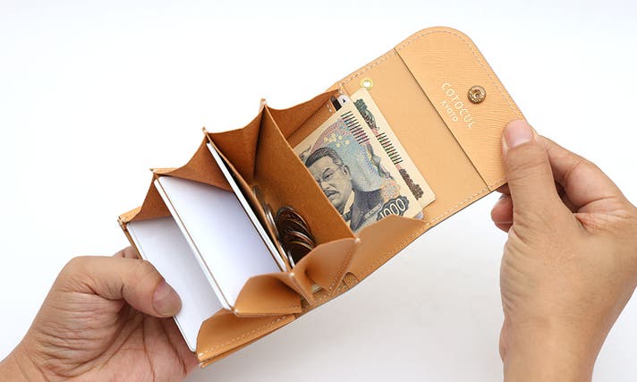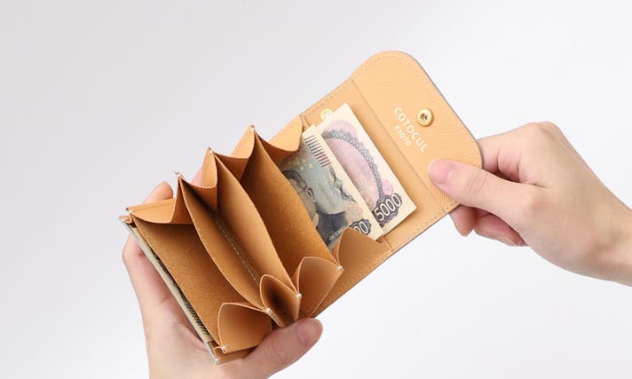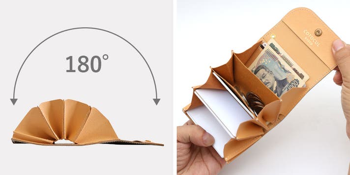 - お札は折らずに収納でき、更に【お札】も【カード】も仕分けが可能。実用性を最優先に考えたミニ財布