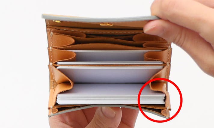又、入れた枚数に応じて革が伸びるので自分に合ったサイズのカードポケットになります