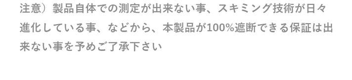 高いシールド効果を確認できました。より効果を上げる為、スキミング防止シートで包み込む様な形状で専用ポケットをつくっております