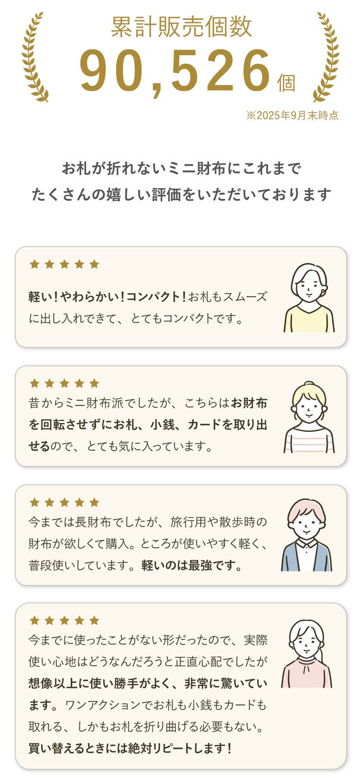 このミニ財布、累計販売個数9万個を超える人気商品の進化版なのです。そのお財布の特徴もご覧ください