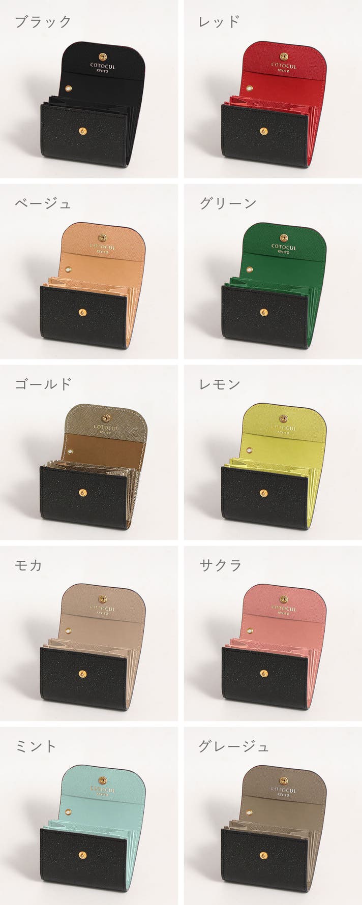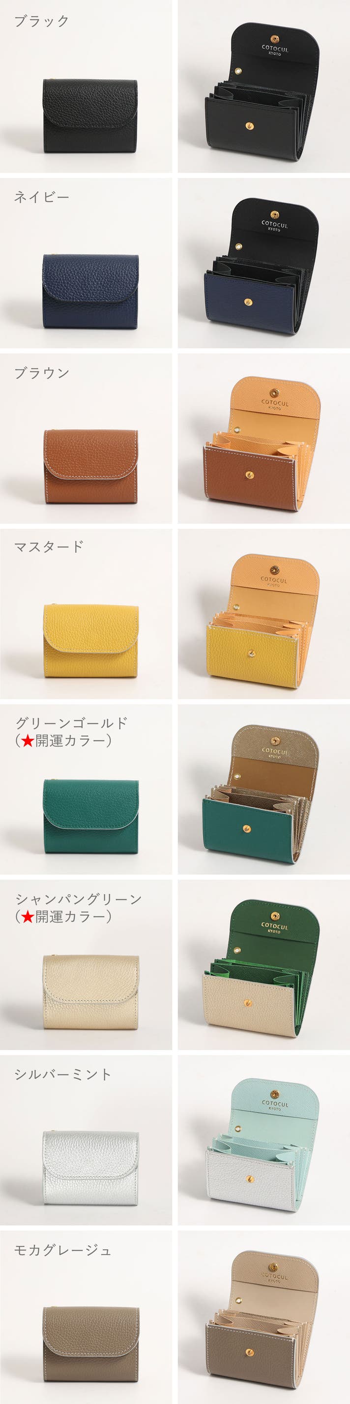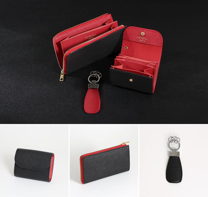 - 開運カラーなど豊富なカラーをご用意。プレミアム版の黒桟革ミニ財布は内装の色が10色から選べます