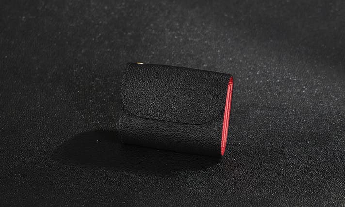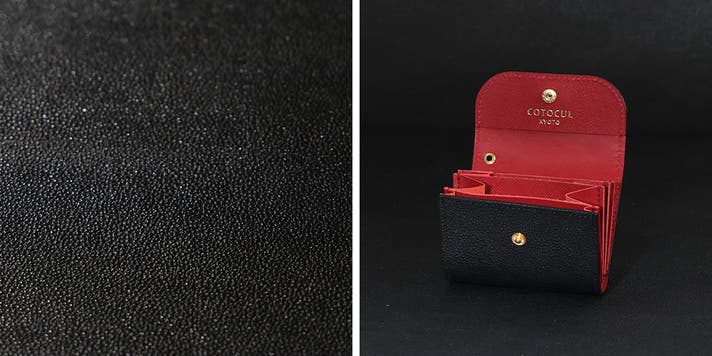 黒桟革ミニ財布は内装カラーを10色の中からお選び頂けます