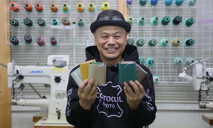 素材は革の地産地消と廃棄削減を目指し、京都で育った黒毛和牛を使って企画開発した、オリジナルの素材ブランド【都レザー】を使用