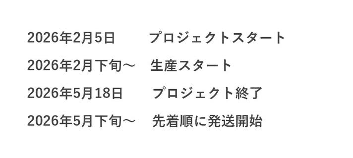 このプロジェクトはAll in型です。目標金額の達成に関わらず、プロジェクト終了日の2026年05月18日までに支払いを完了した時点で購入が成立します。