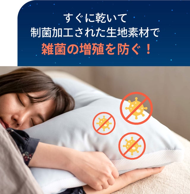 濡れ髪で寝てしまったり、皮脂が付いたりと雑菌が繁殖しやすい状態でも、衛生的な環境を維持します。