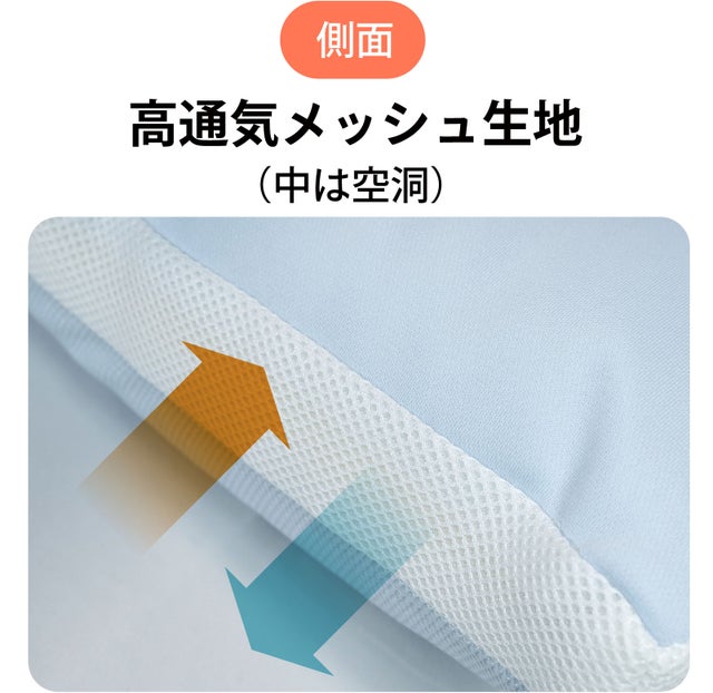 頭を乗せた時に枕内部にこもった熱や湿気を押し出し、寝返りすることで、外の新鮮な空気を取り込みます。