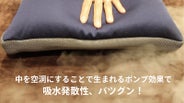 弾力性のある柔らかなわたが、枕内の湿気を含む空気を押し出す働きをし、ポンプ効果の一端を担います。