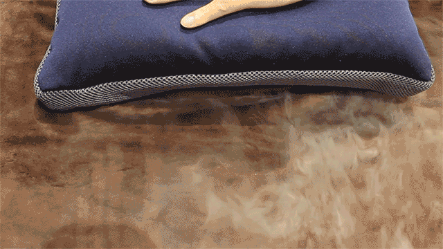 寝返りの代わりに枕を手で押すと、サイドからドライアイスの白い煙が一気に抜けていくことが分かります。