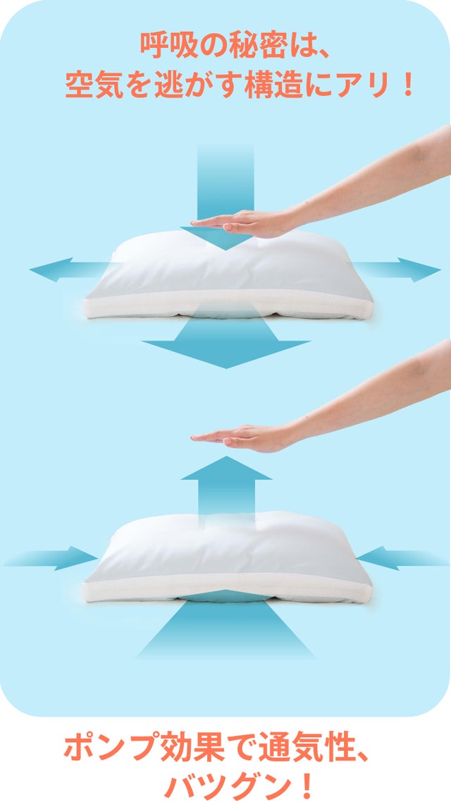 - 【呼吸するかのような通気性】枕の湿気を外に逃し、空気を取り込むポンプ機能を採用
