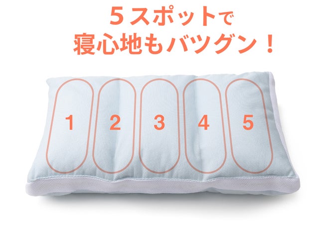 5箇所の凹凸に頭を乗せたり埋めたり…その日の気分によって寝心地を変えられます!