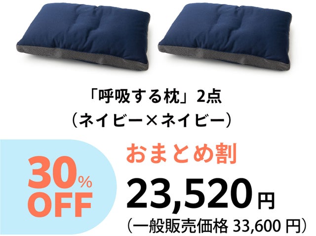【おまとめ割 30%OFF】「呼吸する枕」2点(ネイビー×ネイビー)