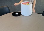 片手でも開閉できる蓋構造。キッチンでも収納しやすいスリムな円筒形デザインです。