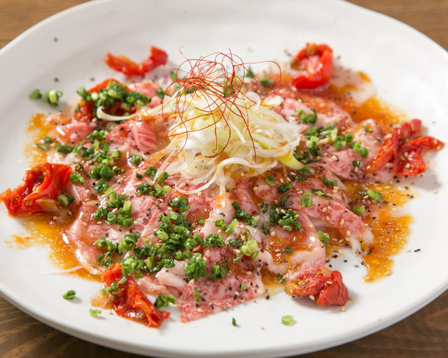 ・COW-BOY人気メニューレシピ=レア和牛丼、和牛のカルパッチョ、和牛のレアかつ、和牛のなめろうのレシピ。