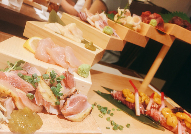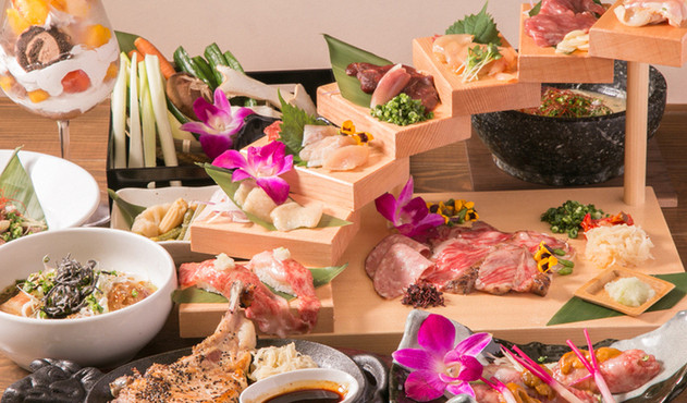 にいがた和牛と比内地鶏、鮮馬の5種鮮肉盛り合わせ(税別:一人前1980円)