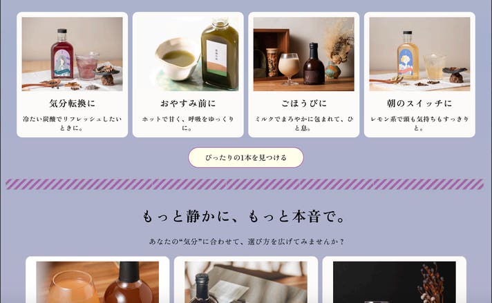 これにより、「何を選べばいいかわからない」を解消し、“今の気分にぴったりの1本”を選べるサイト体験を実現します。
