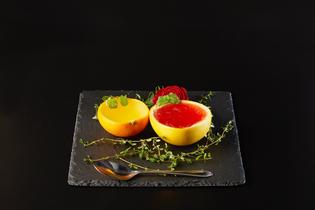 独自の配合でリキュールや果汁をゼリーにした"食べる"カクテルです。華やかな色合いになるように仕上げました。まるで果物を食べるているかのような感覚は、酔いを感じさせませんが、気づけばほろ酔いになる新感覚の体験ができるカクテルです。