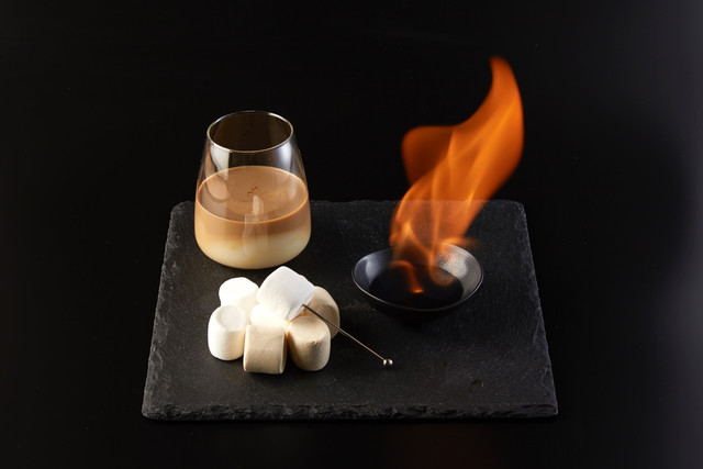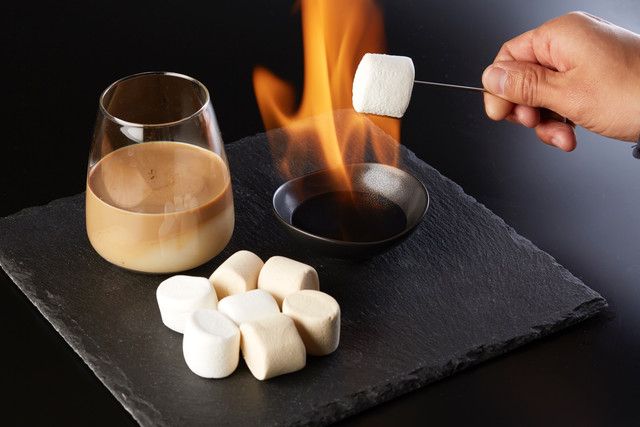マシュマロが"燃える"カクテルです。炙ったマシュマロはそのまま食べるもよし、コーヒーカクテルにディップして食べてもよし。もちろん、コーヒーカクテルはそのまま飲んでも美味しいカクテルです。