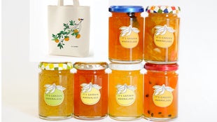 全種類(夏みかん 、夏みかんゆず、スペシャル(アップル)、パイナップル、マンゴー、ベルガモット)マーマレードにトートバッグAが付いてくる、1番おすすめのイッツガーデンコンプリートセットです!