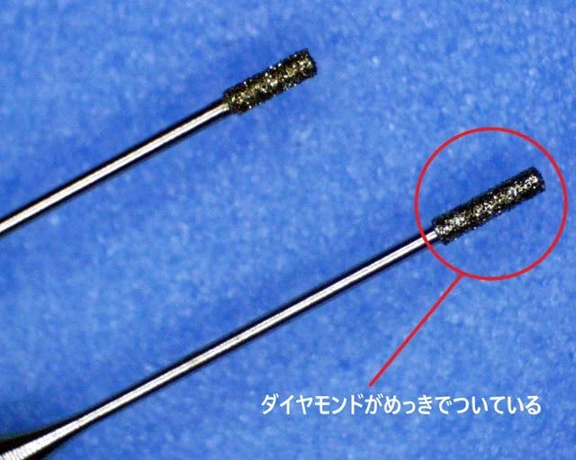 本来、このダイヤモンドをめっきで固着させるという技術は、水晶やセラミックスなどの硬い鉱物を加工するための工具に使用されます。
