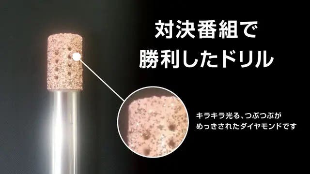 弊社の技術は、某テレビ局の人気番組であった対決番組「ほこ×たて」にて、ドリルの先端に弊社の技術が使用されており、見事に貫通させたほど高い強度を持っております。