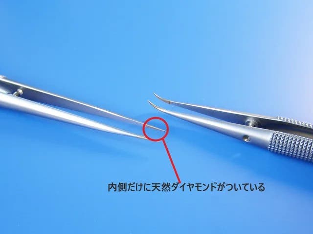 医療現場の医師からも「この保持力は革命的である」と言わしめた、ピンセットです。ダイヤモンドでメッキされた先端部は、小さな力で驚異的なグリップ力を発生します。