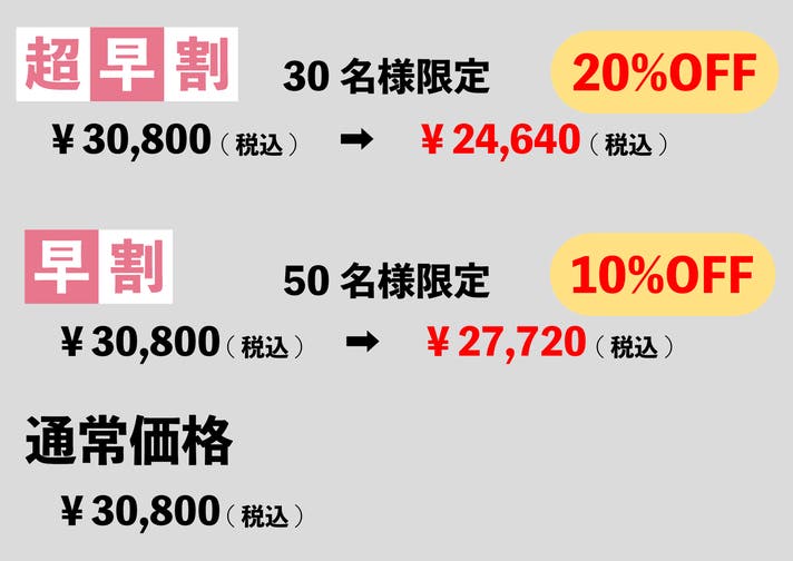 通常価格 30,800円(税・送料込)→ 3,080円割引 27,720円