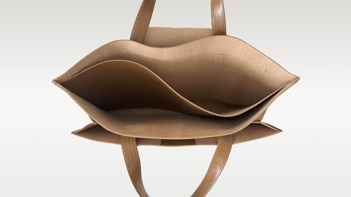 バッグの内装には、軽量化を図る為あえて裏地を使用せず、革の裏面(バックスキン)を丁寧に漉き加工を施し、毛羽立ちやムラを抑えた仕上げに