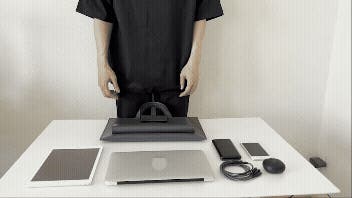 バッグ内部には、4つの収納スペースを配置。13インチノートPCや10インチタブレット、スマートフォンなどのデジタルガジェットはもちろん、モバイルバッテリーやイヤフォン、ケーブル類もしっかり収まります