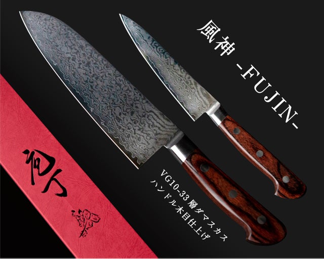 今回「我楽作」シリーズからご用意したのは風神-FUJIN- / 雷神-RAIJIN- の三徳包丁とペティナイフ。