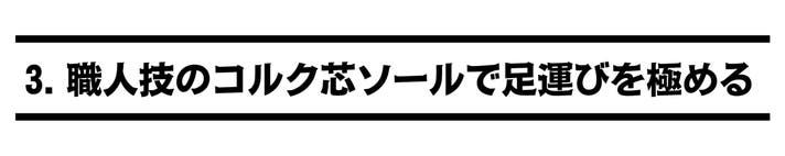 踏み出すたびに感じるコルク芯ならではのしなやかさと硬さが、足元に普段と違う着用感をもたらします。