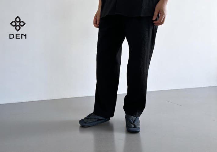 「DEN」のロゴは、技術を未来へと伝える「傳」と、日本の原風景であり暮らしの土台を象徴する「田んぼ」から着想を得ています。さらに、草履の鼻緒を挿げる際に開ける穴のかたちや、縄を綯う(なう)動作のイメージも重ね合わせ、伝統と生活、手仕事の力強さをロゴに込めました。