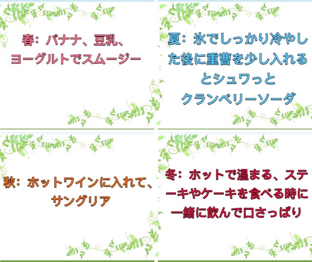 クランベリースムージーは友人が家に遊びに来た際に作って差し出すと、女子力高っ!と驚いてくれました。