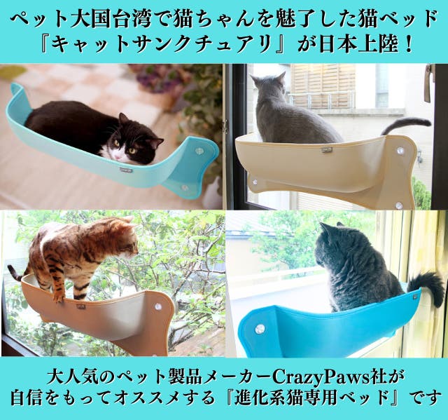 陽だまりで外を見ながらまったりと過ごさせてあげたくて、窓設置型の類似商品を試しましたが、吸盤が弱く、愛猫が本体ごと落下してしまった経験がありました。愛猫たちのお気に入りの居場所だったので、品質のよい窓設置型のものを世界中から探し、たどり着いたのが、この「キャットサンクチュアリ」です。