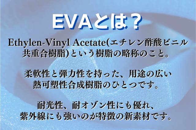 EVA樹脂は環境ホルモンなどの有害な物質が少ないため、子ども用の玩具などに広く使われている素材です。