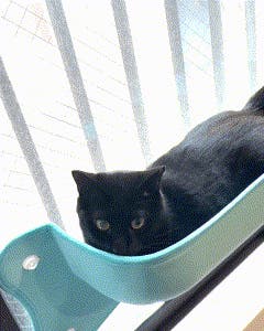 『暴れても安定してて安心!吸盤式でどこでも簡単に着けられて高さも猫ちゃんの運動神経に合わせて変えられる!これから暑くなるから窓際は涼しいし、外も眺められてなかなかに良いな!』