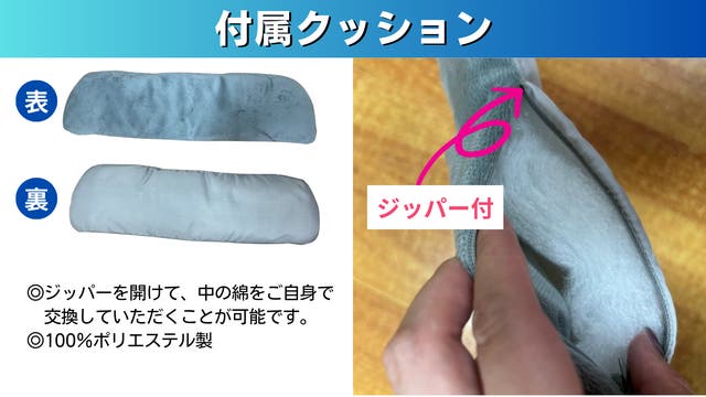 4)クッションが汚れたら、手洗いで丸洗いすることが出来ます。チャックを開けると中の綿が取り出せるので、お好みで足したり、交換したりすることも可能です。