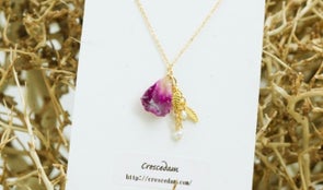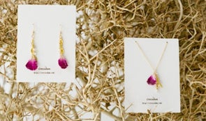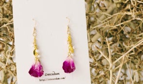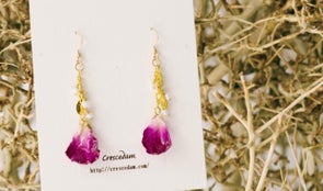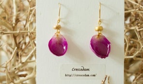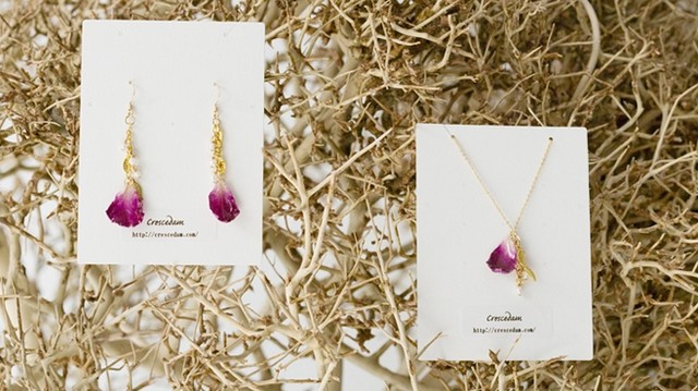 そこで、「Crescedam」は花びらを樹脂で加工したアクセサリーを作り、お花屋さんの「LADY AND GENT」さんと協力してアクセサリーと花のセット販売をすることにしました!