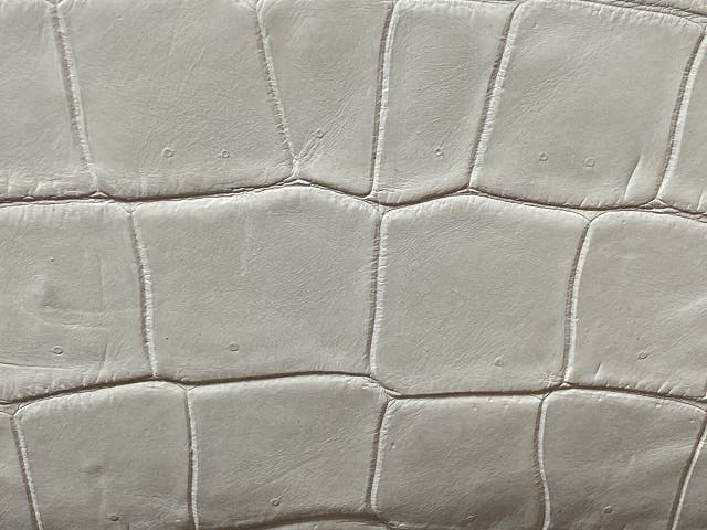 A1: ヒマラヤクロコダイルは、無塗装で仕上げる白色系の腹側の素材です。クロコダイル革の中でも非常に希少価値の高い素材です。腹ばいで動き回る生態ゆえ、白い腹側はそもそも傷つきやすく、綺麗な白色で、商品化できる個体はそれだけでも全体の10%以下に限定されてしまう希少性です。雪解けのヒマラヤを思わせる斑点のグラデーションが美しく、「いつかはヒマラヤ」と言われる、憧れの素材です。