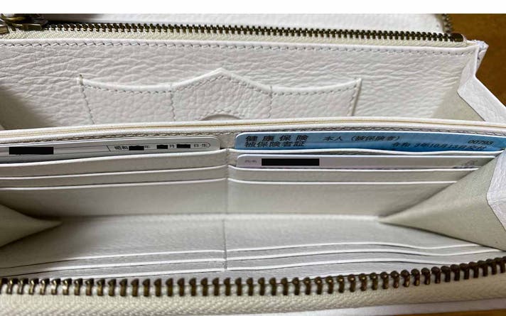 折れ曲がると困る「切手」や、滅多に使わないけど、使いたい時に持っていたい「ギフトカード」などは「邪魔にならず」に入れておけるスペースが便利です。(全3箇所)