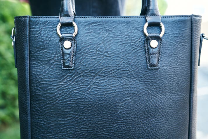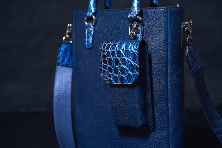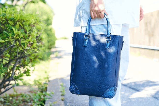 今回は、日常からビジネスまで幅広くお使いいただけるイタリアヌメ革とクロコダイル革にて「縦型トートバッグ」と専用「サングラスケース」を開発しました。タブレットや書類が収まる実用的な容量に加え、荷物がすっきり収まる仕切り構造や、持ち運びやすいスマートなフォルムを実現。さらにサングラスケースにも同じクロコダイル革とイタリアヌメ革を使用し、統一感と上質さを兼ね備えました。