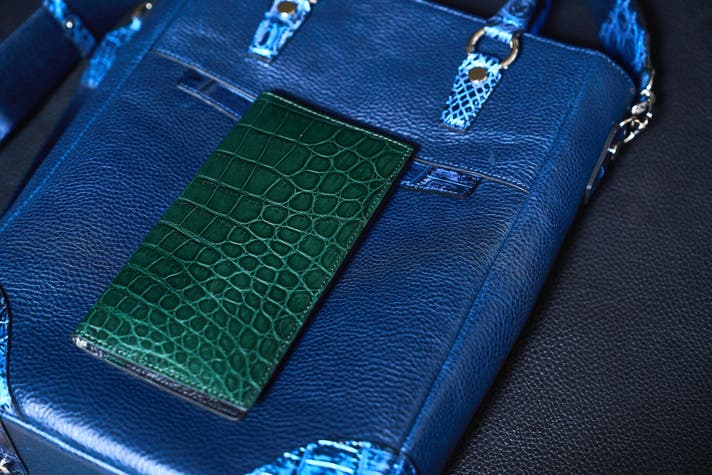今回のモデルでは、外装はミッドナイトブルー・ブラック・ディープグリーンの3色をご用意。それぞれが、外装のラージクロコダイルとも美しく調和し、使うほどに味わいを増していく逸品です。