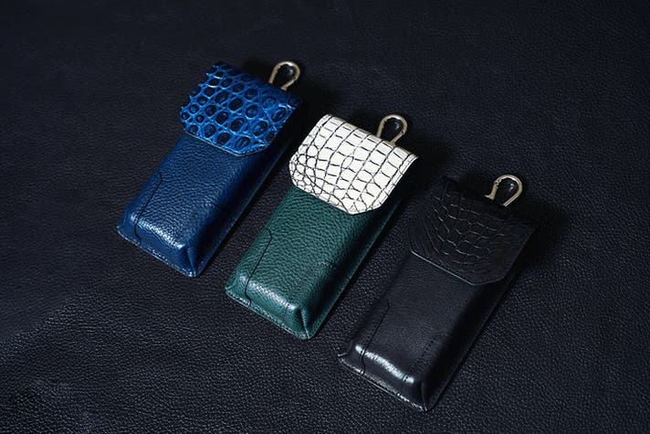 今回の製品に使用しているクロコダイル革は、東京都台東区に拠点を置く大手の老舗革屋さんの協力のもとに、丁寧に仕上げられています。