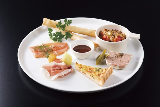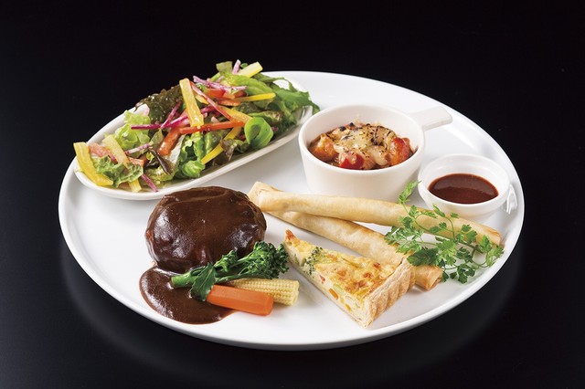 ボリュームのあるメインの肉料理を中心に、温冷前菜、サラダ、バケットなど一皿に取り揃えたバラエティー豊かなメニュー